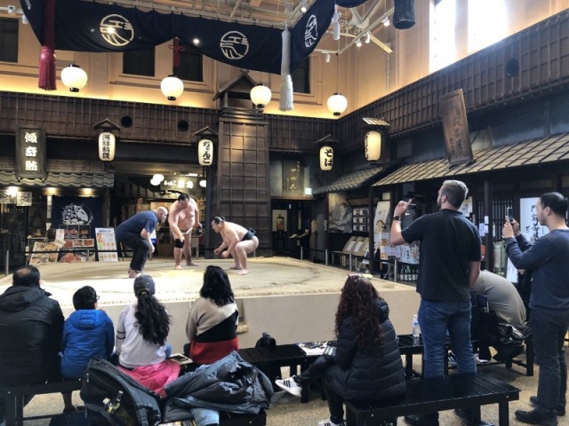 WHERE: The Sumo display happens at Edo Noren, a two-story food and shopping center in Tokyo opened in November 2016 as part of the redevelopment of Ryogoku Station. Ryogoku is the heartland of Japanese sumo and Ryogoku Station is less than five minutes’ walk from the Kokugikan sumo stadium and close to a number of sumo stables or heya – where sumo wrestlers live and train.