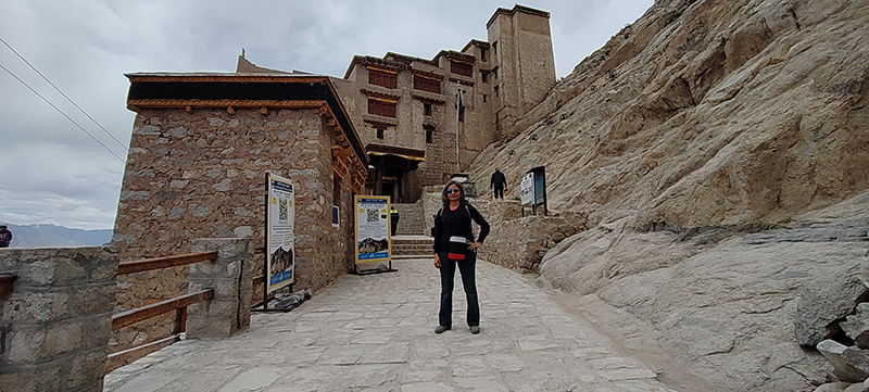 Garima Pande of Wandering Jane enjoys the beauty of Leh while another traveller poses at the world’s highest post office