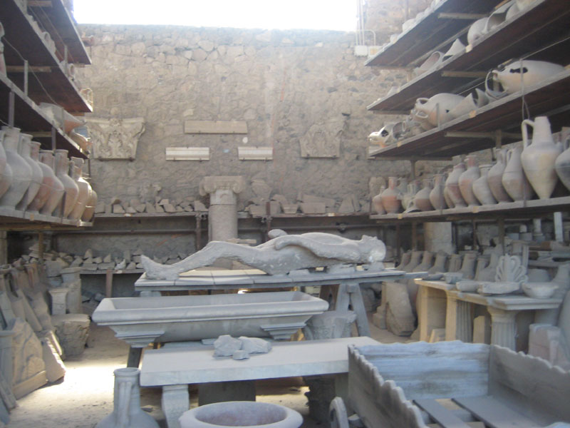 The huge hall where the fish and meat market was located show faded paintings with fishmongers and a lively market scene. You can also see where the wool market was located. The bakeries’ ovens look similar to the old brick stone oven seen even today in some rural areas. At the ‘House of the Baker’ there is a garden with millstones of lava used for grinding the wheat.