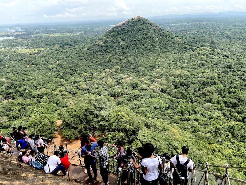 It is a Fortress in the Sky. On the summit are the remains of the Royal Palace. Halfway during the trek, you find a small plateau where the King had built a gateway in the form of an enormous lion. The name of this place is derived from this structure — SÄ«nhāgiri, the Lion Rock.