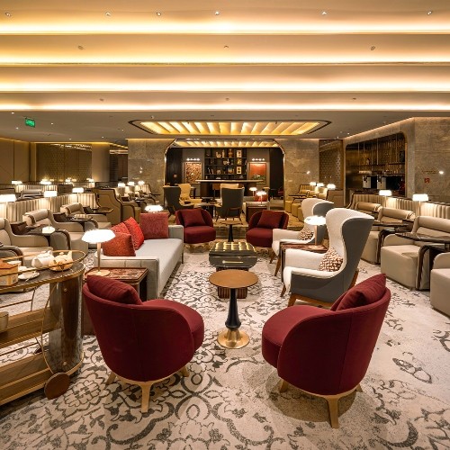 Designed with subtle sophistication and thoughtful details, The Maharaja Lounge, made to the new branding and design philosophy of Air India, strikes a fine balance between heritage-inspired ambience and modern luxury.