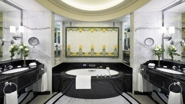 The chic marble bathrooms are in soft grey and cream hues inspired by Paris’ heritage of haute couture. While they are purely royal in design and look, the amusing experience can also be to use a Japanese style Toto Washlets with the technology enhanced toilet seat.