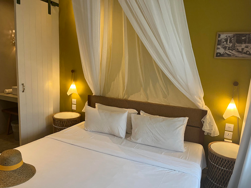 The hotel has 116 rooms including two rooms for disabled guests. Among the rooms categories are- Comfort Room, Family Unit, Superior Room and Privilege Room. The rooms are painted in yellow and white with polished concrete floors. The cozy beds are highlighted by muslin drapes hanging from the ceiling.