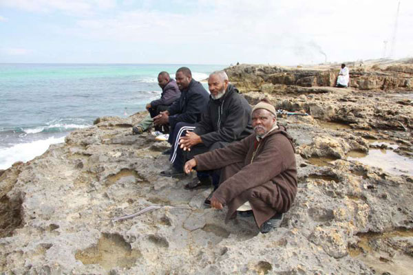 A group of Tawerghan men displaced after the fighting in Libya in 2011. UNHCR is concerned about the situation of some 2,500 Tawerghans who fled their camp in Benghazi in mid-October 2014 to escape fighting. Photo: UNHCR/L. Dobbs