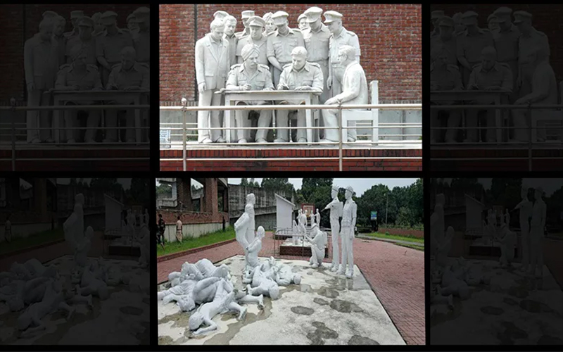 The vandalised statue depicted the moment of signing of the 'Instrument Of Surrender' by Pakistan Army Major-General Amir Abdullah Khan Niazi to the Indian Army and Bangladesh's Mukti Bahini.