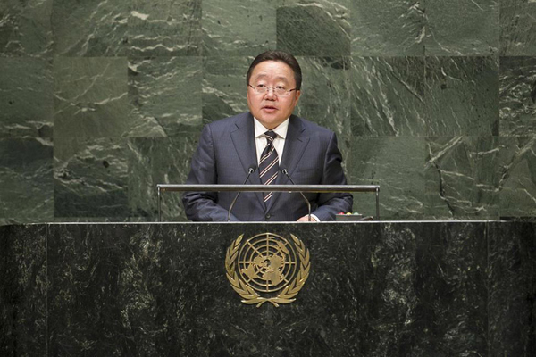 President of Mongolia Tsakhiagiin Elbegdorj addresses the general debate of the sixty-ninth session of the General Assembly. UN Photo/Cia Pak