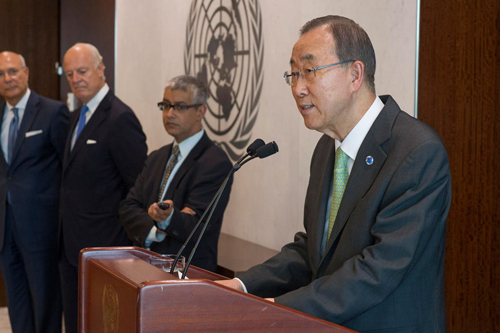 Secretary-General Ban Ki-moon briefs reporters on crash of Malaysia Airlines flight. UN Photo/Eskinder Debebe