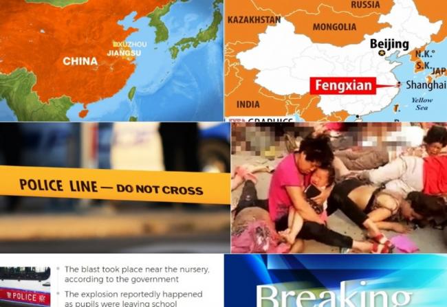 The explosion occurred near a kindergarten in Fengxian County in east China's Jiangsu Province.