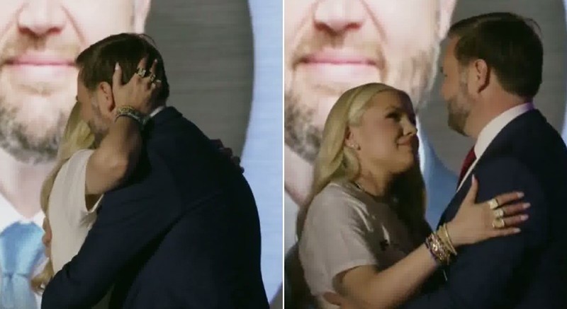 As Vance walked onto the stage, the two shared a lingering embrace that social media users quickly dissected frame by frame.