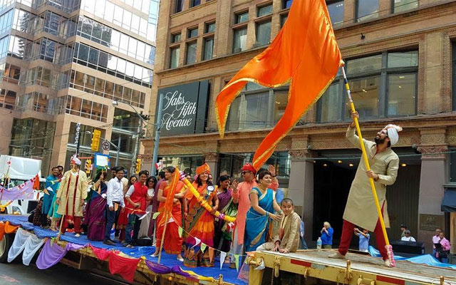 Led by Bollywood actress Neetu Chandra, they participated in a grand parade along the streets of Toronto, accompanied by marching bands and nine floats representing several Indian states.