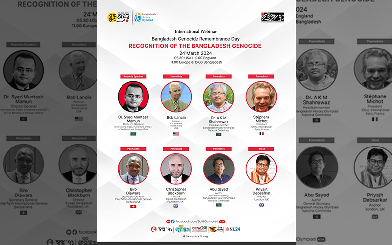 Global experts to participate in international webinar on 'Bangladesh Genocide' on March 24