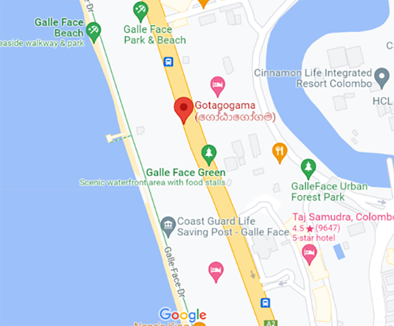 The protesters have placed a placard renaming the 'occupying area' at the Galle Face Green as 'Gota Go Gama', NewsWire reported.