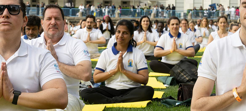 New York: Celebrating the union of body, mind and soul, hundreds of yoga enthusiasts - including UN officials and staffers - filled the green expanse of the North Lawn at UN Headquarters in New York on Wednesday to mark the ninth celebration of the International Day of Yoga, observed each 21 June.