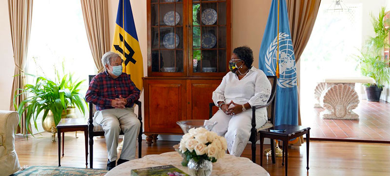 Along with M. Mottley, the Secretary-General also met what he described on Twitter as “a dynamic group” of young Barbadians, “working on innovative solutions to the world’s great challenges – from climate action, to COVID-19 recovery.”