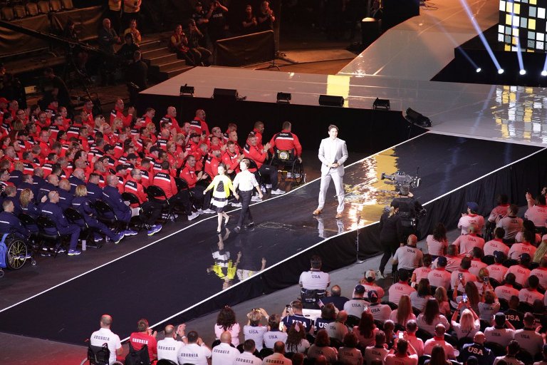 The Opening Ceremony featured a lively Parade of Nations, where war-wounded athletes marched, limped or wheeled their way to the arena.