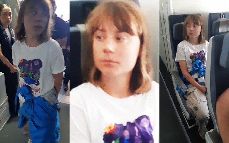 In the images, she could be seen sitting in the plane.