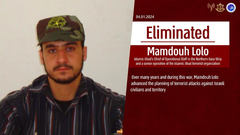 The Islamic Defense Forces on Friday said it has killed Palestine Islamic Jihad (PIJ) commander Mamdouh Lolo.