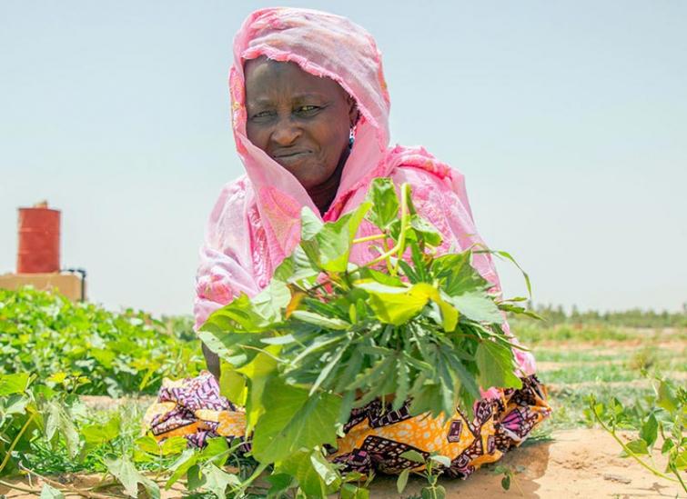 Photo caption and credit: WFP/Simon Pierre Diouf A woman in Mali takes care of a community garden which is part of the World Food Programme's capacity building project.