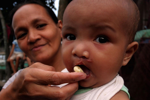 A mother in Mindanao, Philippines, feeds her baby with high-protein paste during a feeding programme for survivors of tropical storm Washi. Photo: IRIN/Jason Gutierrez