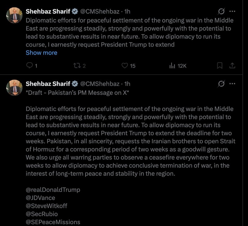 Shehbaz Sharif's 'draft' tweet sparks controversy amid Iran conflict