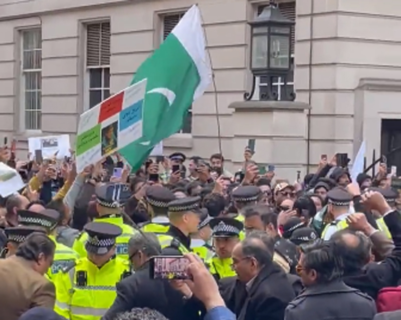 PTI-PML-N supporters face off outside Nawaz Sharif's residence in London