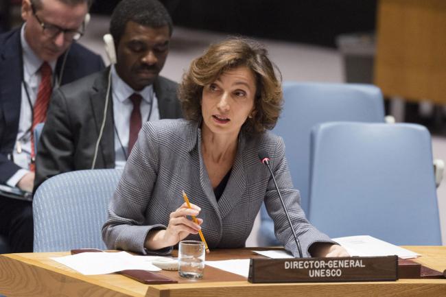 In her briefing, newly-appointed UNESCO Director-General Audrey Azoulay, spotlighted the Secretary-General’s first report on the adoption by the Council of resolution 2347 (2017), which, among others, condemned destruction of cultural heritage and the looting of cultural property.