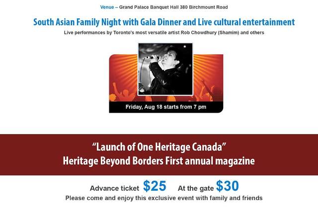 South Asian Cultural Night to be held in Toronto on August 18