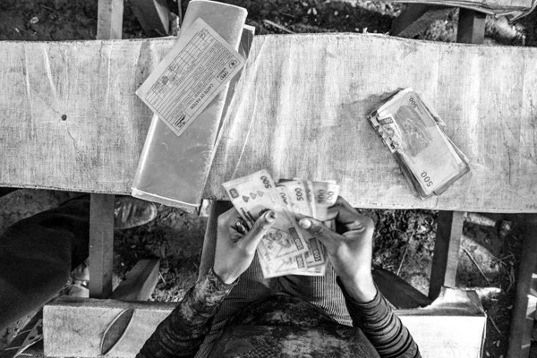 A refugee from Central African Republic checks the money she received for four people during a cash grant distribution in Mole camp, northern Democratic Republic of the Congo (DRC). Photo: UNHCR/B. Sokol