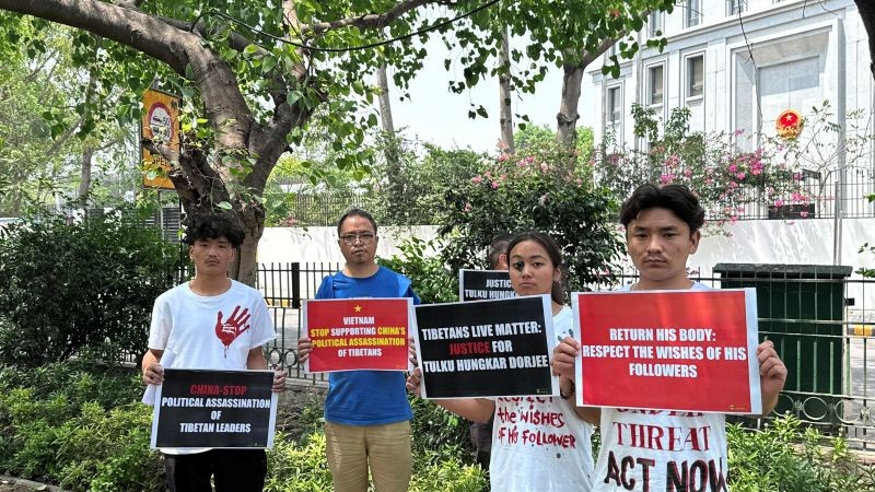 In an X post, TYC said: "Tibetan Youth Congress activists protested outside the Chinese Embassy, urging international pressure on Chinese and Vietnamese authorities for a transparent probe into Tulku Hungkar Dorje's detention and death. Demanding his body be returned to his monastery and family."
