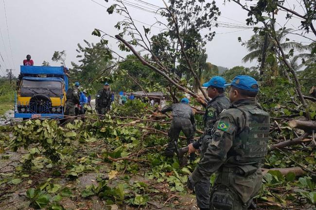 In the wake of the devastation caused by Hurricane Matthew in the Caribbean region Brazilian Marines with the UN Stabilization Mission in Haiti (MINUSTAH) clearing the roads is Haiti