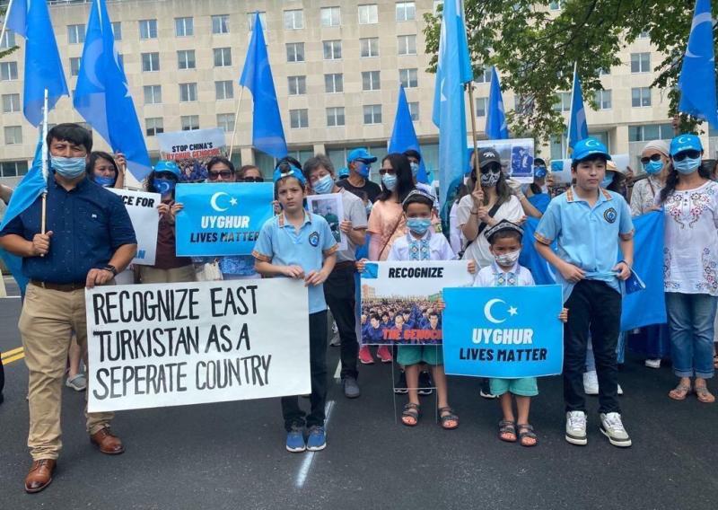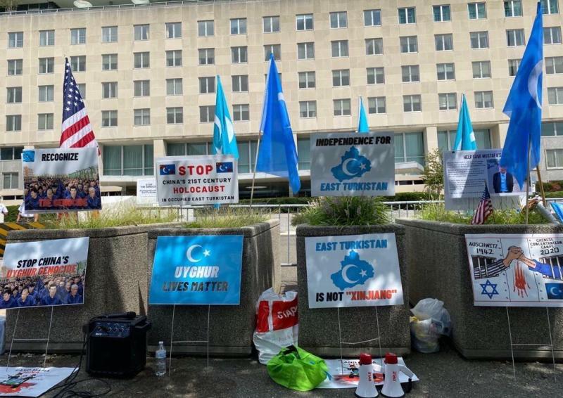 Uyghur activist Haidr Jan attended the protest and asked people to support the Uyghurs exiled around the world, including in the United States, for their effort to hold China responsible for the placement of Uyghurs, Kazakhs, and other Muslim ethnic minorities in concentration camps, where they have endured indoctrination, torture, slavery, and murder.