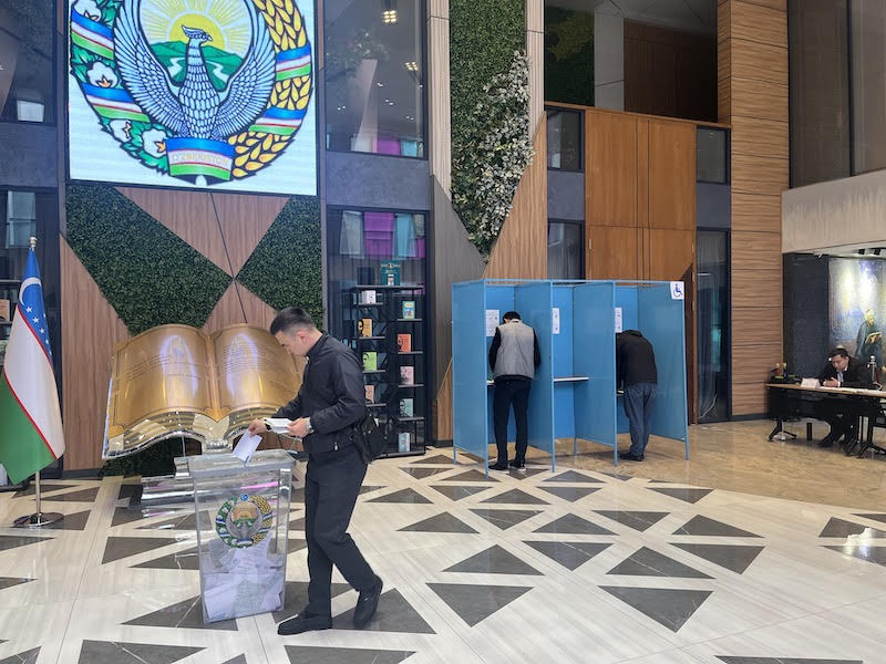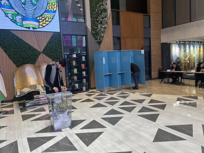 A younger voter casts his ballot in a polling booth in Tashkent. Photo by Sujoy DharThe results:
