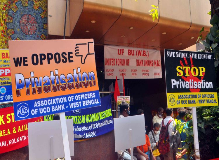 The strike call was given by United Forum of Bank Union (UFBU), an umbrella body of nine bank unions, in the wake of the Union Government's announcement to privatise two Public Sector Banks as part of the Centre's disinvestment plan.