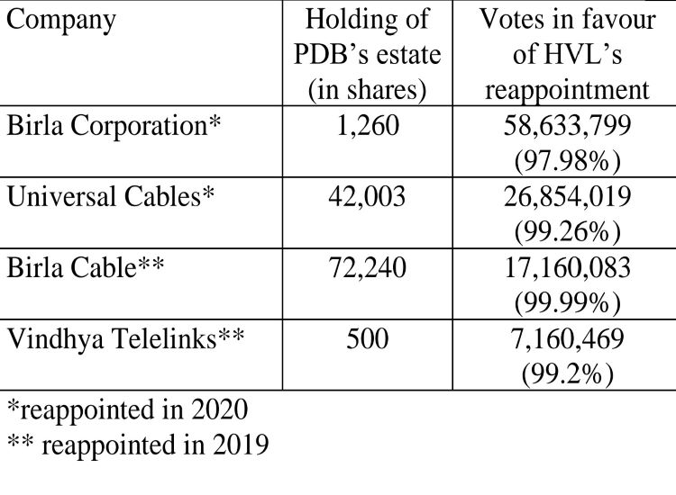 The four corners of the estate of Priyamvada Devi Birla was conclusively established in the inventory of assets prepared unanimously by the three joint administrators way back in 2013, and Mrs Priyamvada Birla’s shareholding in the four manufacturing companies is given below as found by the Administrator Pendente Lite (APL) Committee in their inventory report along with results of polling over reappointment of Lodha in the last two years.