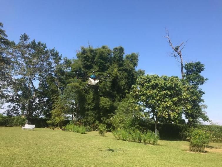The drones will spray fertilizers and pesticides on the tea plants from 6-8 feet above from the ground.