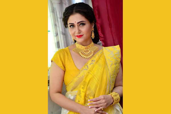 IBNS Image: Tollywood actress Swastika Mukherjee showing off some gold ornaments at a Kolkata jewellery shop