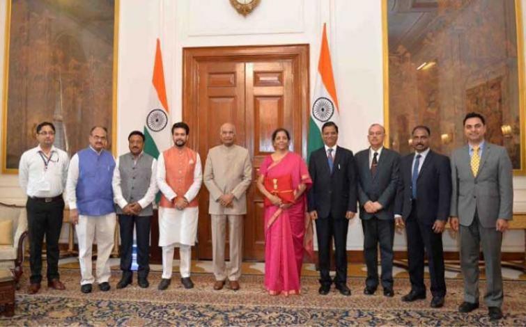 Sitharaman was spotted outside the parliament as well as during her customary meeting with President Ram Nath Kovind carrying the budget documents in a red cloth bag.
