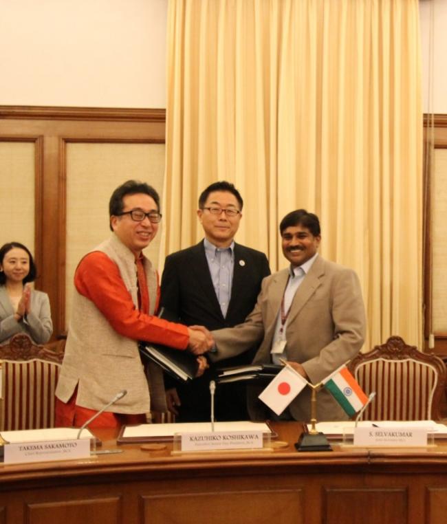 The grant agreement was signed between Takema Sakamoto, Chief Representative, JICA India Office and S. Selvakumar, Joint Secretary, Department of Economic Affairs, Ministry of Finance, Government of India.