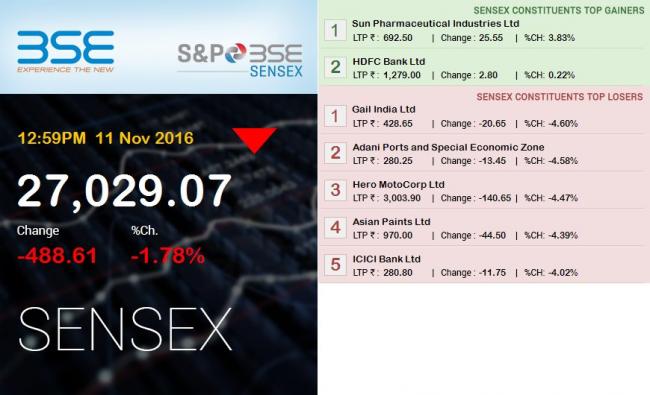 In the morning hours, Sun Pharma, BHEL, SBI and HDFC Bank were top gainers while GAIL, Hero MotoCorp, Asian Paints, ICICI Bank and HDFC were among the losers on Sensex on Friday.