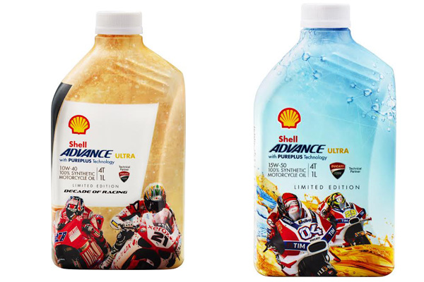 While the packaging design for Shell Advance Ultra 10W-40 captures the brand’s motorsport association with Ducati over the last 10 years and celebrates Shell Advance the winning ingredient in Ducati’s racetrack journey; the pack design for Shell Advance 15W-50 captures Shell Lubricants’ MotoGP journey.