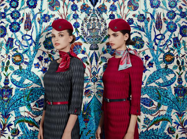Ettore Billotta, the fashion designer behind the uniforms said, “When I started to design for Turkish Airlines, the first thing that inspired me was Istanbul. This city has been a melting pot for art and civilization for centuries and has a rare richness as a common heritage of many cultures. I wanted to bring elements from traditional calligraphy and mosaics together with the new interpretations of Turkish motifs, which emphasize modern lines, into foulards and ties to reflect a contrast and duality.”