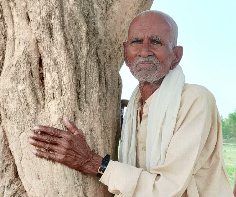 One of the oldest living residents of the village considers the Salvadora trees as part of the collective identity and heritage of the village. Photo by Sat Singh.