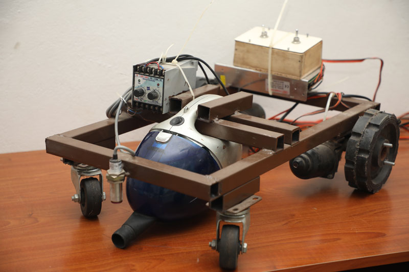 Explaining key features of the device, project leader Mr TV Kishore Kumar, final year civil engineering student of Sona College of Technology, said the plastic waste collecting device is mounted on a sturdy frame with an infra-red sensor attached to a mobile vacuum chamber. It is capable of sensing plastic on the roads and attracting it.
