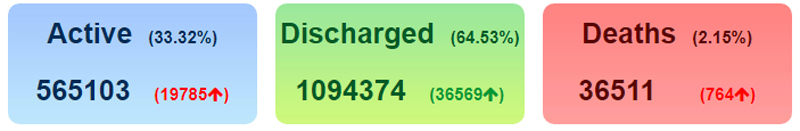 So far, 1094374 people have been discharged or recovered from the highly infectious disease.