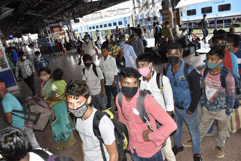 Migrants arriving from Maharashtra wait in a queue for COVID-19 test at Patna railway station (Image Credit: UNI)