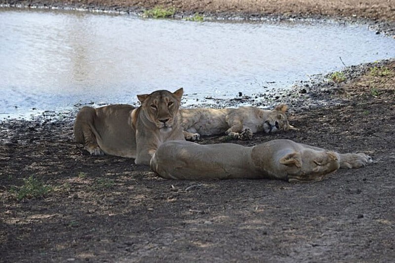 Female lions bask next to a lake in Gir. From 2020 to 2025, the population of Asiatic lions increased from 674 individuals to 891 in Gujarat. Image by Archana96 via Wikimedia Commons.The Gujarat Forest Department study credits the increase in population to a mix of law enforcement, habitat protection, prey availability, political will, and scientific input. The revival of Asiatic lions in India led the International Union for Conservation of Nature (IUCN) to reclassify the species from “critically endangered” to “endangered” in 2008.