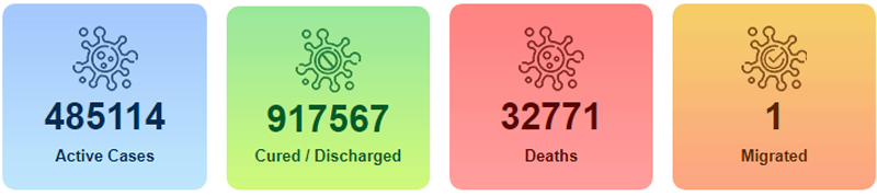 This data includes 4,85,114 active cases and 9,17,568 discharged/migrated cases.