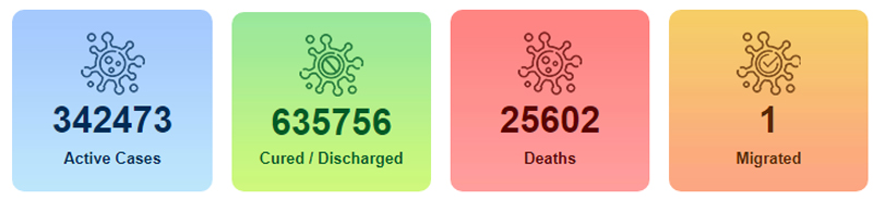 With 687 new deaths recorded, the death toll due to the highly infectious disease now stands at 25602.
