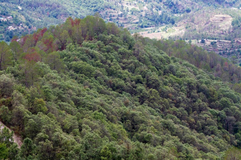 A protected stand of banj oak in the Kumaon region of W. Himalaya. Photo by Vinay Nair.