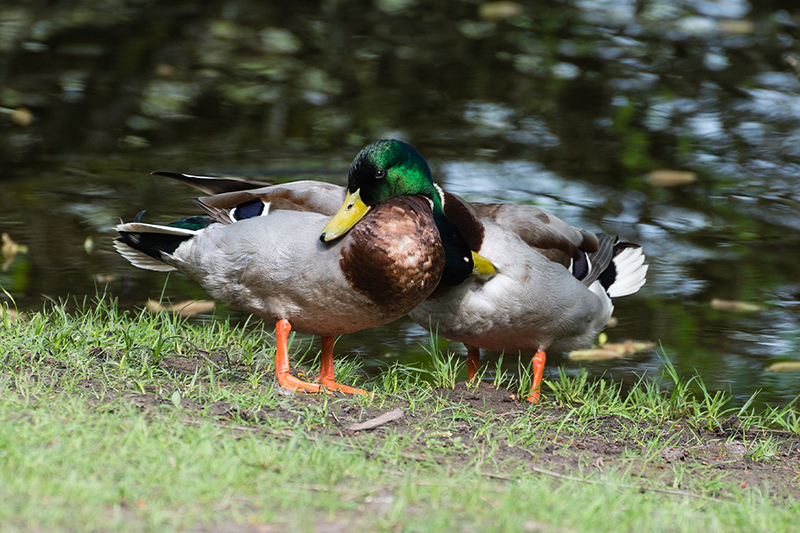 Two male mallard ducks in Hesse, Germany, showing the behaviour of a duck couple. Photo by Norbert Nagel/Wikimedia Commons.